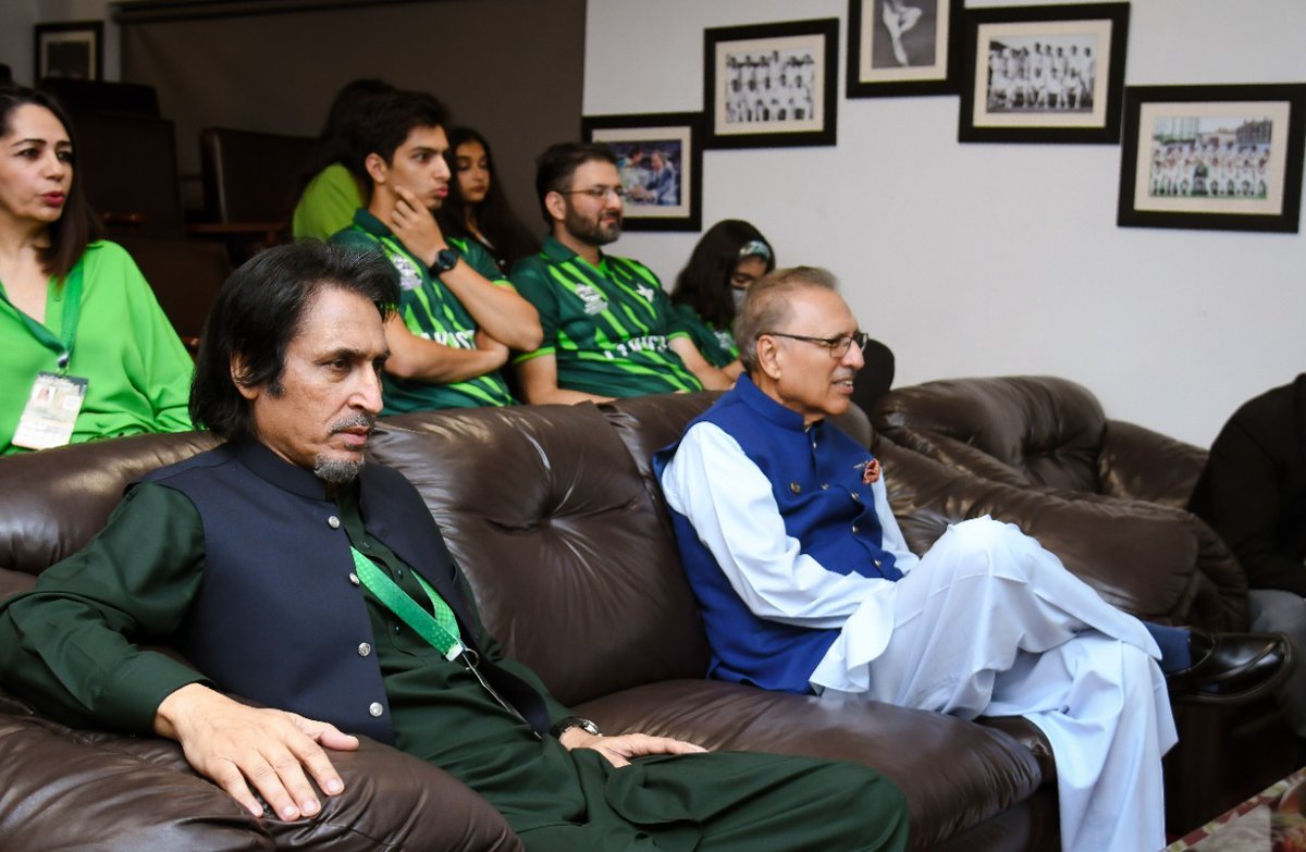 President of Pakistan Dr Arif Alvi and PCB Chairman Ramiz Raja are watching the 3rd <span class="tag"><a href="https://twitter.com/search?q=%23PAKvENG">#PAKvENG</a></span> T20I. <span class="link"><a href="https://t.co/aRwCtJpBnc">https://t.co/aRwCtJpBnc</a></span>